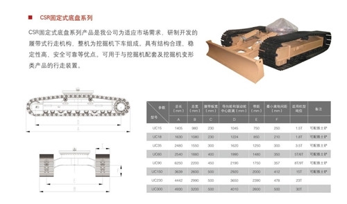 CSR fixed chassis series chassis is a running gear which is independent research and development product to meet the market demand 91香蕉|91香蕉视频污|91香蕉视频在线观看|91香蕉下载. The equipment is the lower parts of excavator and has advantages of rational structure, high stability, safe and reliable, etc. It could be used as traveling gear for excavator or other similar products.