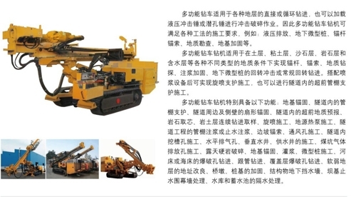 Multifunction drill carriage applies to bolt anchoring, geological surveying, grouting reinforcement, percussion rotary drilling or normal rotary drilling of mini-pile underground works and so on in soil layer, clay layer, sand layer, lithosphere, water bearing layer and other geological conditions 91香蕉|91香蕉视频污|91香蕉视频在线观看|91香蕉下载. It could be used to do the jet grouting work for construction of supporting and lead pipe shed supporting work in tunnel with whitewashing equipment. Special functions of the multifunction drill carriage are as follow: foundation anchoring, pipe shed supporting in tunnel, fan anchoring for side wall or circum of tunnel, lead geological forecast in tunnel, rock core fetching, constant drilling in rock layer, jet grouting, GSHP construction, pipe shed grouting or waterproof grouting in tunnel construction, side slope anchoring, vent hole construction, channeling hole construction in tunnel, horizontal gas vent, vertical water well and supply well construction, coalpit gas vent construction, opencast hard rock crushing, foundation anchoring, grouting, mini-pile construction, blasthole drilling on riverbed or seabed, drilling with casting, blasthole drilling on cover layer, soft ground improving, bridge pier/pile foundation strengthening, reteintion wall underground of structure, waterproof curtain-wall treatment of dam foundation, waterproof treatment for reservoir impounding reservoir.