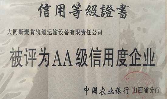 农行山西省分行评为“AA级信用度企业”