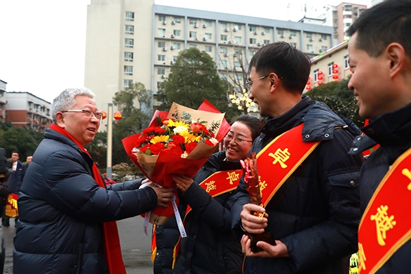表彰仪式上,公司党委书记,董事长陈志新为获奖团队颁发奖杯 91香蕉|91香蕉视频污|91香蕉视频在线观看|91香蕉下载,赠送鲜花。